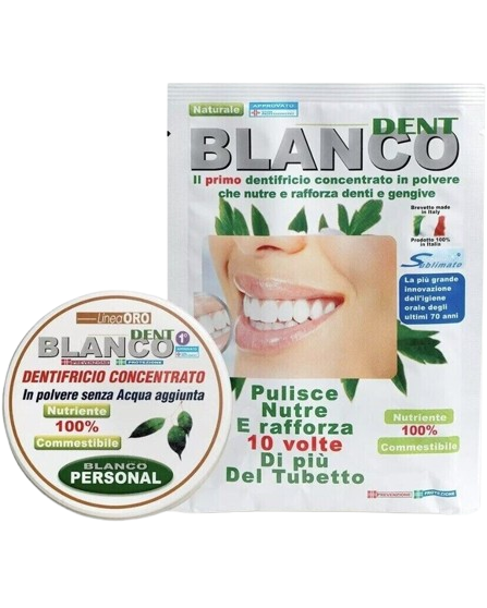 Blancodent è composto da elementi erboristici selezionati , oli essenziali e Bicarbonato Sublimato (formula brevettata). È ideale per denti e gengive sensibili che sanguinano facilmente, sicuro per lo smalto, nutre fino alla radice e la sua azione alcalinizzante attacca i batteri acidofili garantendo cosi una protezione maggiore e più duratura dei denti.