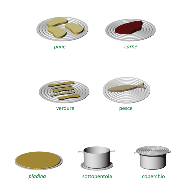 Sostituisce facilmente: padella, tostapane, graticola e griglia. Utilizzabile anche come coperchio o sottopentola.